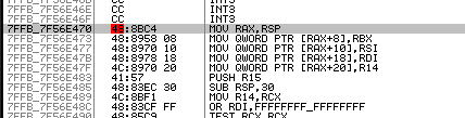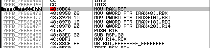 실제 함수가 동작하는 곳으로 이동하게 된다. 여기서 처음 함수 에필로그 부분에 우클릭 하여