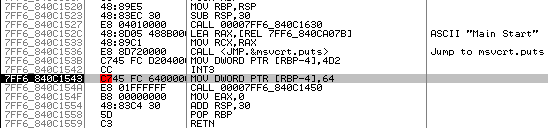 출력 중간에 assembly 코드를 삽입해 보았다.