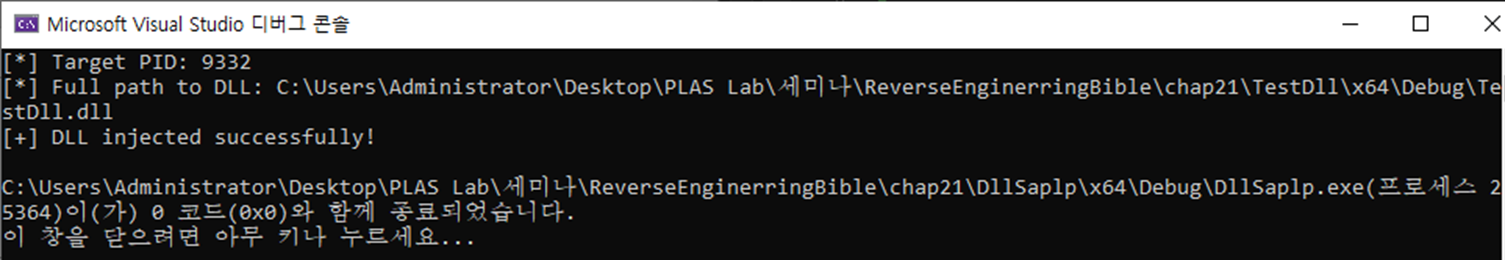 printf("[+] DLL injected successfully!\n");