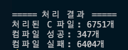 실행 결과는 67515개 파일중 347개가 컴파일에 성공한 것을 볼 수 있었다.