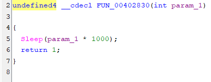 함수를 따라가면 Sleep 함수를 전달받은 파라미터로 호출한다. 1000을 곱하는 것으로 보아 입력은 초 단위인 것을 알 수 있다.