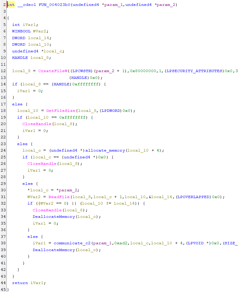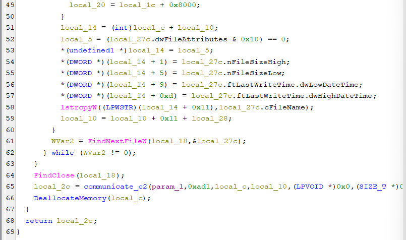 이전와 반대로 C2 서버로 파일을 업로드 하는 함수다. 내부에 있는 데이터를 탈취할 때 사용된다.