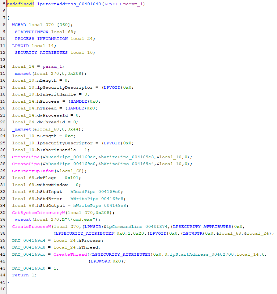 그 다음 CreateThread인자로 사용되는 함수인 lpStartAddress_00401040(함수 포인터)를 분석해 보았다.