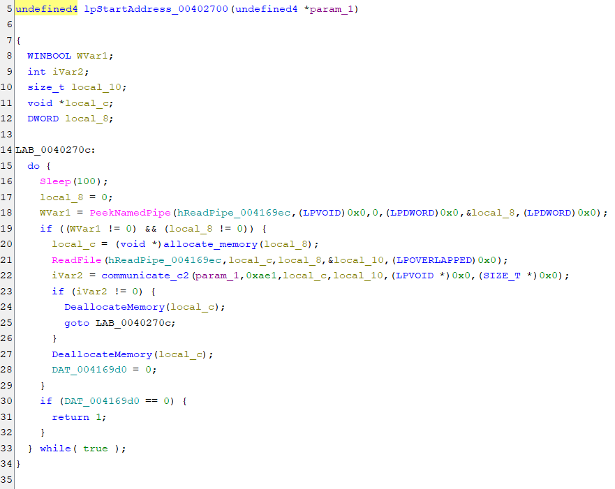 내부의 lpStartAddress_00402700 함수 포인터를 사용하는 것을 볼 수 있다.