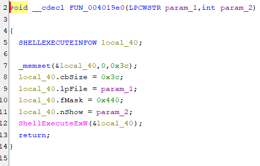 ShellExecuteExW함수는 윈도우 운영체제에서 프로그램을 실행하거나 특정 팡ㄹ을 열 때 사용하는 아주 대표적이고 강력한 API다.