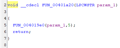 이전에 분석한 함수 00401a20과 같은 것을 볼 수 있는데, 두 번째 인자가 0으로 변경되었다.