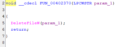 내부에서 DelteFileW를 호출하는 것을 볼 수 있다.