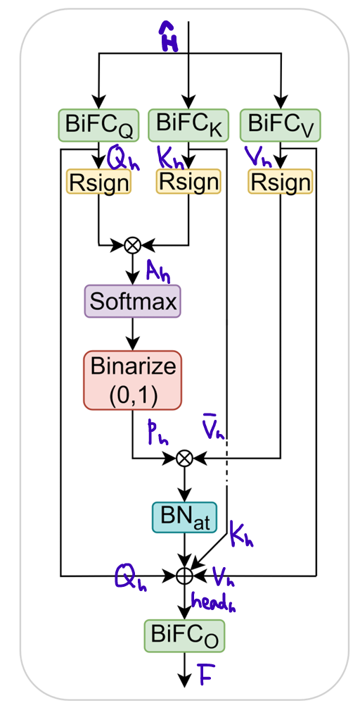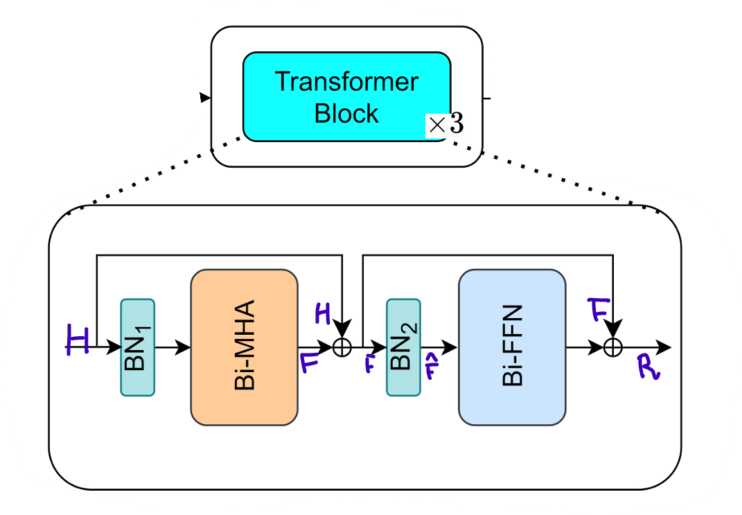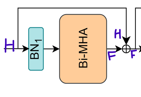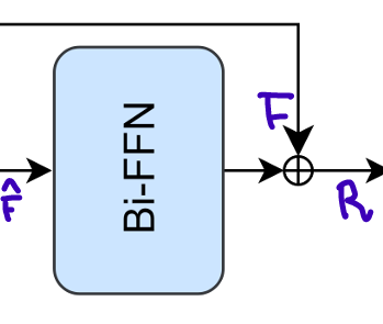 정규화된 는 두 개의 BiFC로 구성된 BiFFN을 통과하고, 마지막으로 BiFFN의 output에 두 번째 main residual connection이 적용되어, 다음과 같이 최종 출력 을 얻는다.
