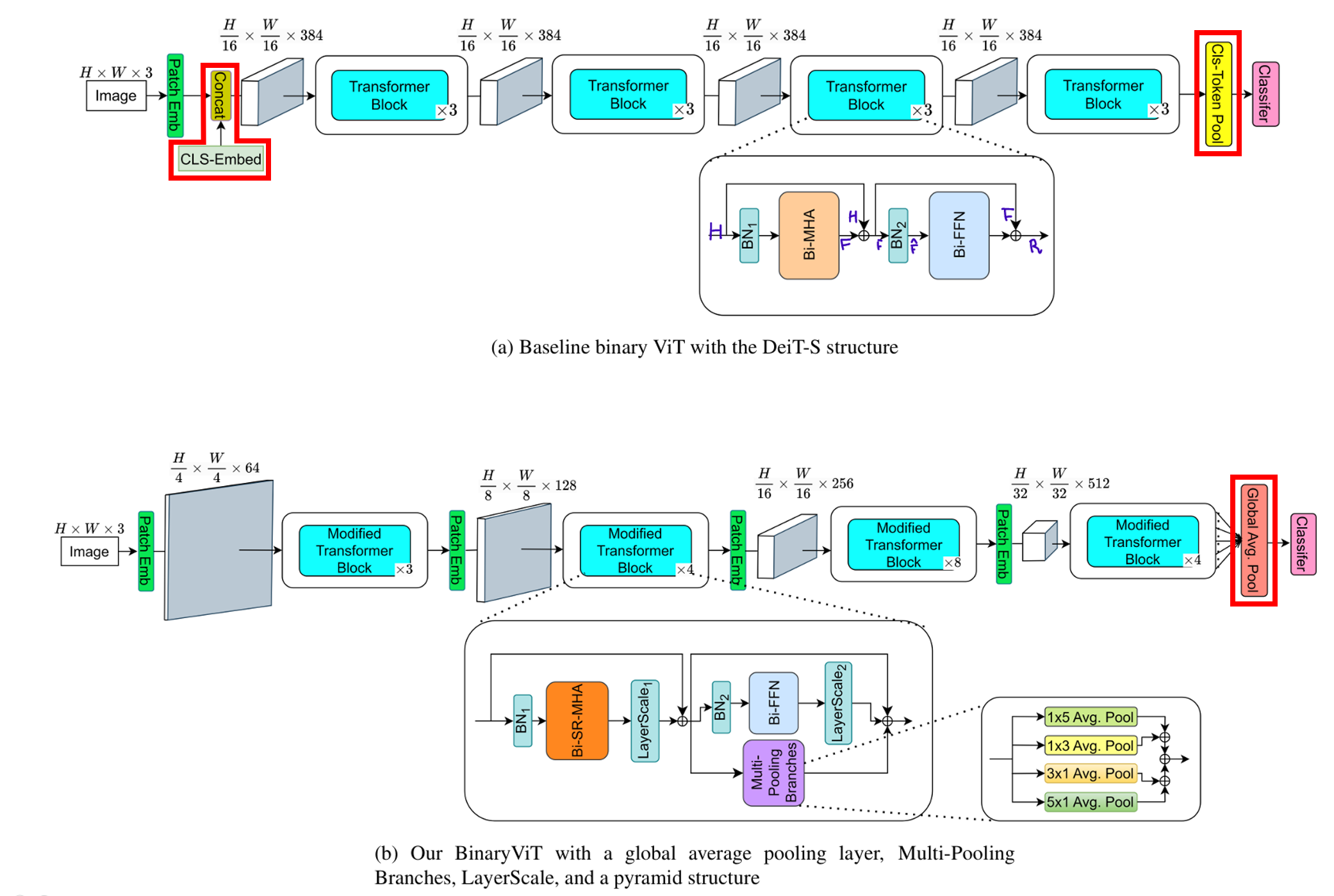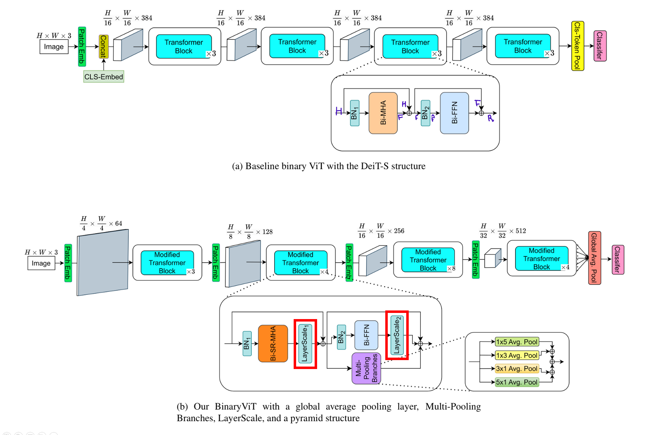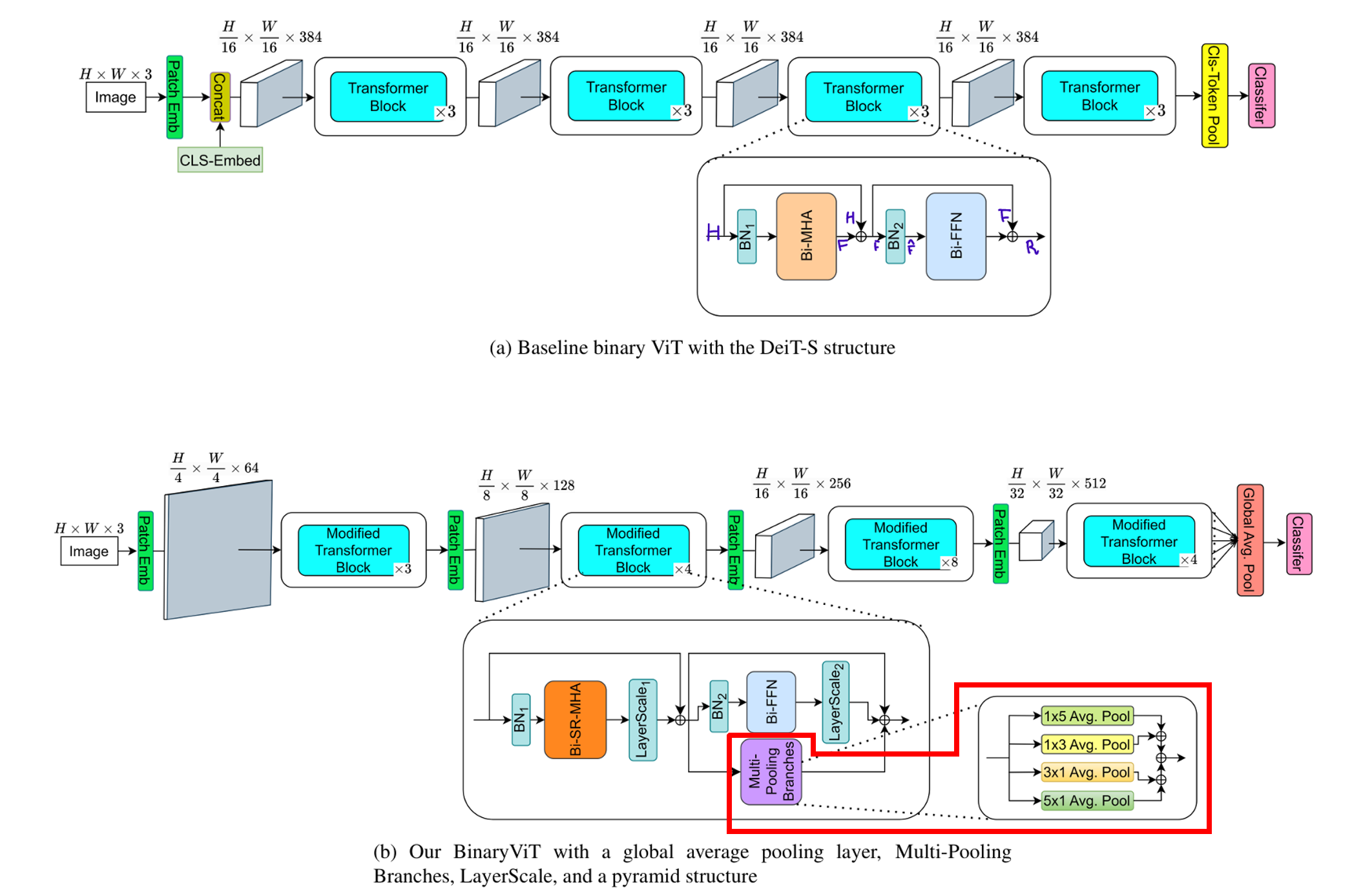 ==> Transformer block 내부의 Bi-FFN 옆에 4개의 average pooling branch를 추가.