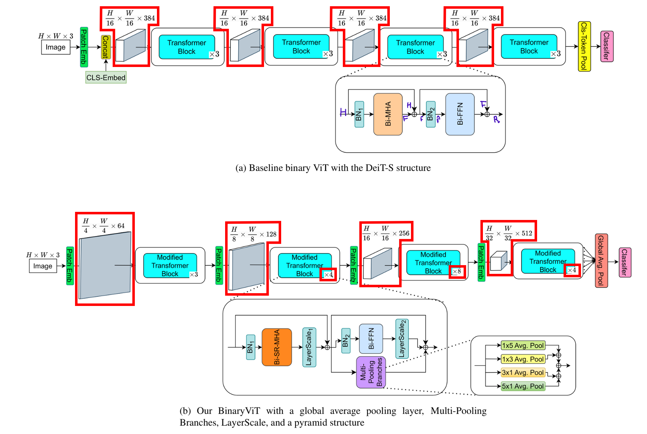 최신 SOTA Binary CNN은 고해상도에서 저해상도로 점진적으로 feature map 크기를 줄이고, hidden dimension은 증가시키는 pyramid structure를 갖는다.