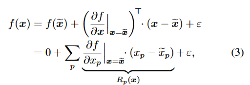 이때, x는 벡터이므로, f(x)=R(x)+ϵ=∂x∂f∣∣∣∣x=x~⊙(x−x~)+ϵ