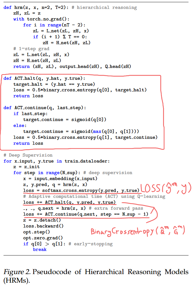 ⇒ Training 中에만 adaptive halting strategy를 HRM에 통합.