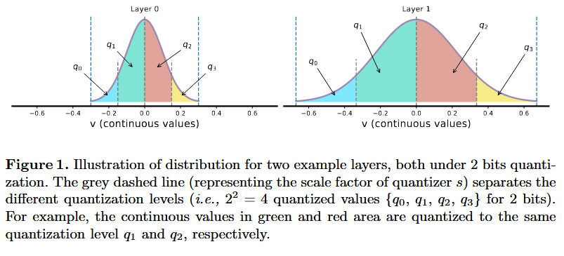layer 1에서는 더 많은 서로 다른 연속적인 값들이 동일한 Q된 값으로 mapping