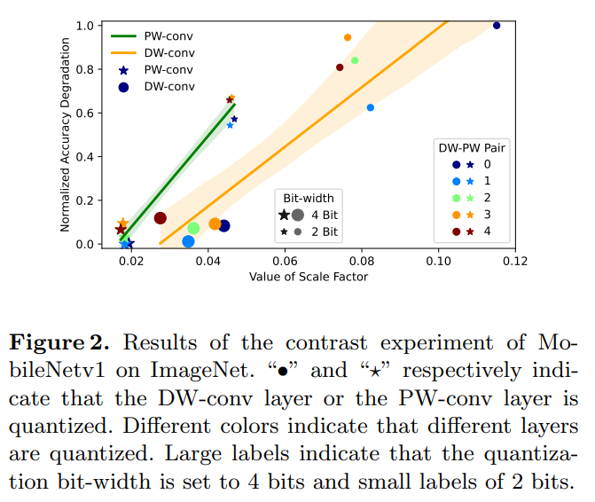 MobileNetv1에 있는 5개의 DW-PW 쌍 각각에 대해, 개별적으로 Q해가며, scale factor와 accuracy를 측정.