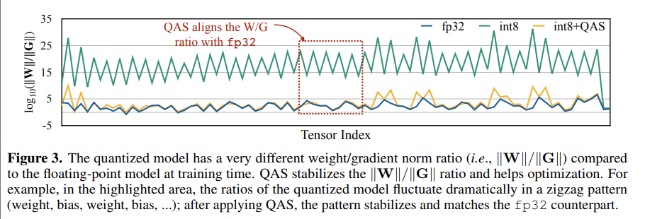 이 문제를 해결법은 quantized graph의 gradient를 보정하는 QAS이다.
