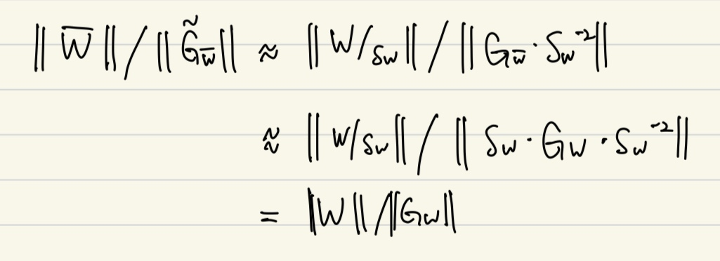 이렇게 되어, weight와 gradient의 비율이 만큼 어긋나 있음을 알수 있다.