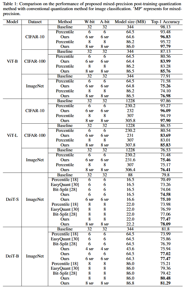 이태까지 Vit의 PTQ 연구가 없어서, 기존 CNN을 위한 PTQ 기법들과 비교함