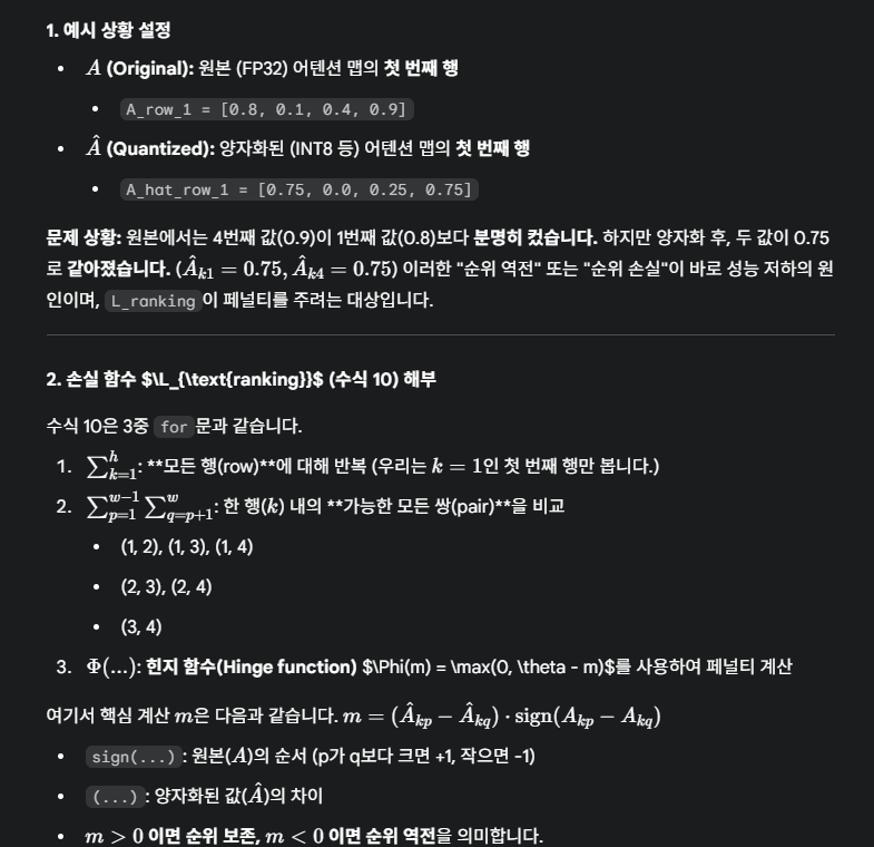 ⇒ Ranking Loss function을 통해, Q Attention 값의 쌍별 순서가 원본 attention 값의 순서를 유지하도록 함.