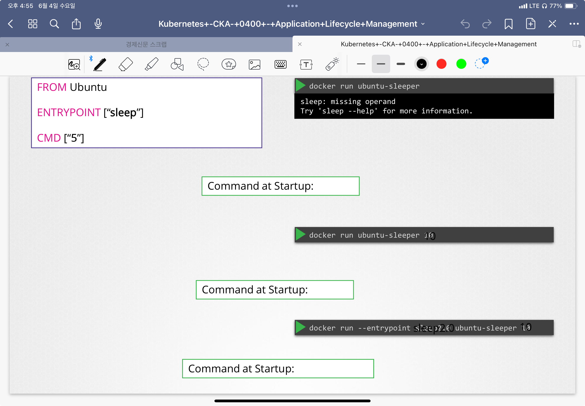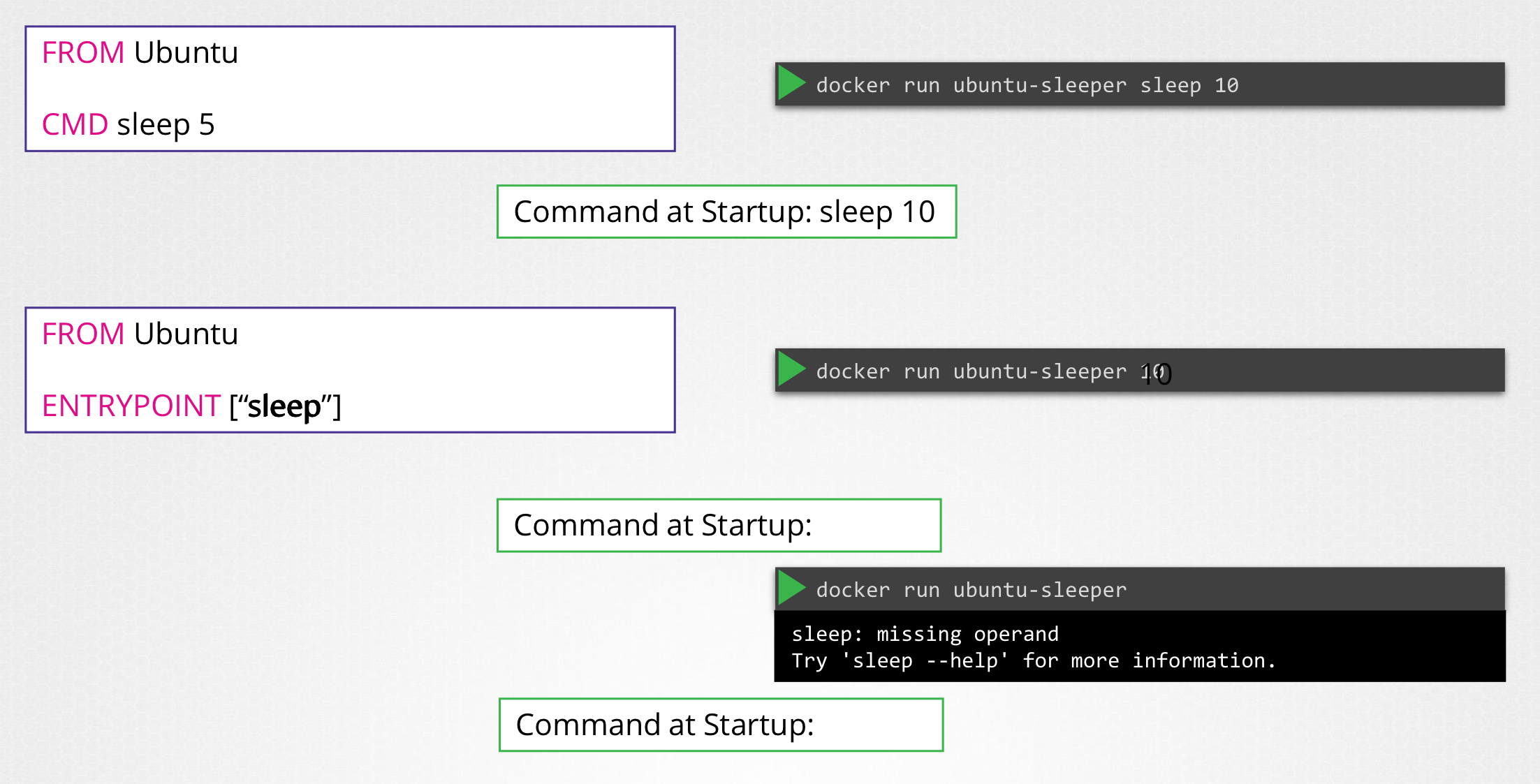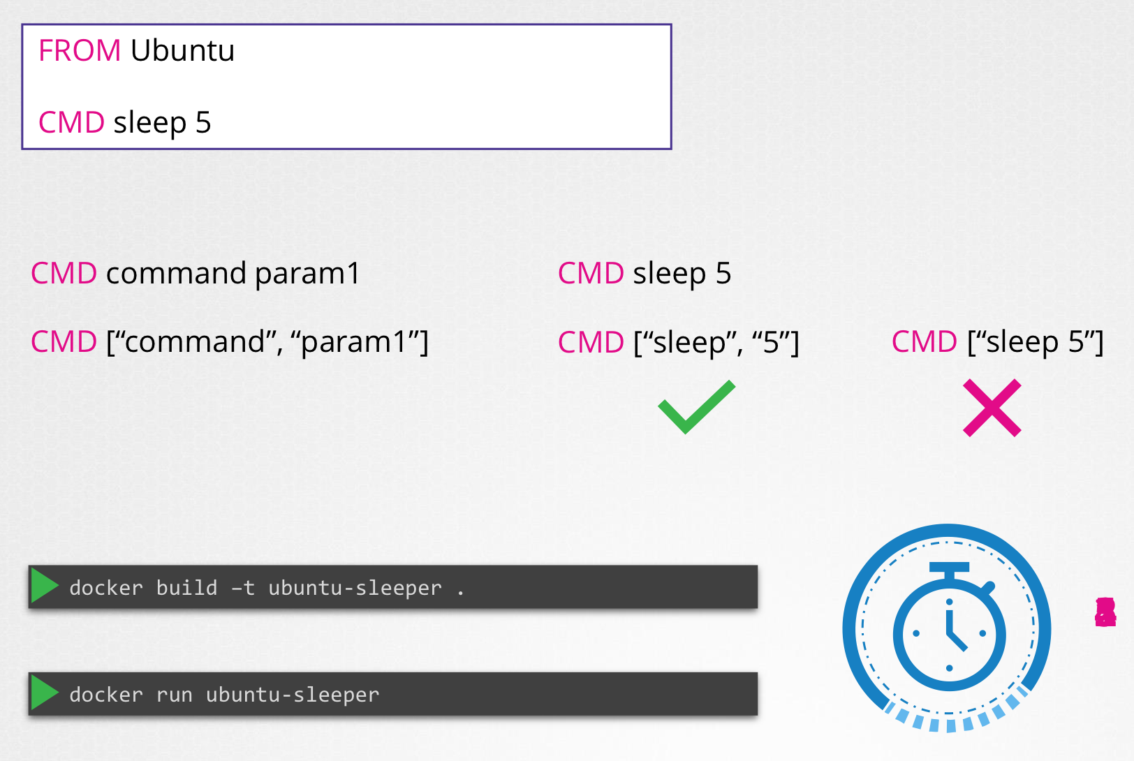 sleep 5명령을 가지고 있다- Dockerfile을 정의할때 CMD가 아닌 ENTRYPOINT 필드를 작성한다