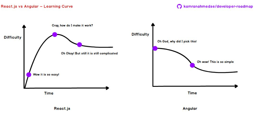 Angular 을 이야기 할 때 보통 러닝 커브가 높다고 이야기 한다. 왜 Angular 의 러닝 커브가 높다고 이야기 하는지 생각해보면, Angular 를 통해서 처음 개발을 접하고자 할 때 진입 장벽이 타 Framework, 혹은 Library 보다 알아야 할 것이 많기 때문이다. Angular 의 Template 문법, CLI, Rxjs, HTTPClient, Routing 등.. 진입 할 때 배워야 할 것이 많아 보인다. 하지만 초기 진입 장벽만 해결한다면, Framework 의 특성 상 빠른 속도로 개발하고 유지 보수에 있어서 특화 되어 있다는 장점이 있다.