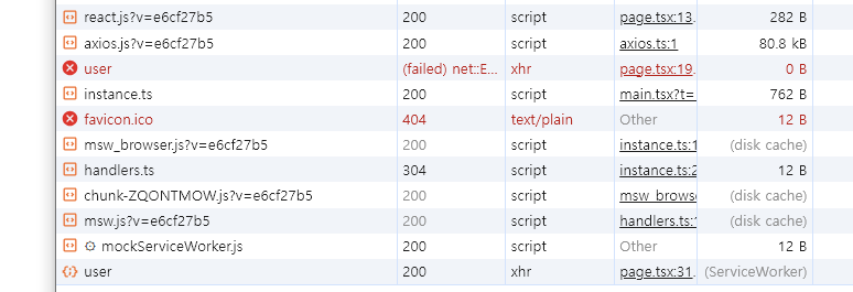 하지만 제 예상과는 다르게 loader에서 호출하고 있는 /user에 먼저 접근을 한 뒤, 서비스 워커가 불러와지고 있는 이상한 .. 이슈를 겪었어요.