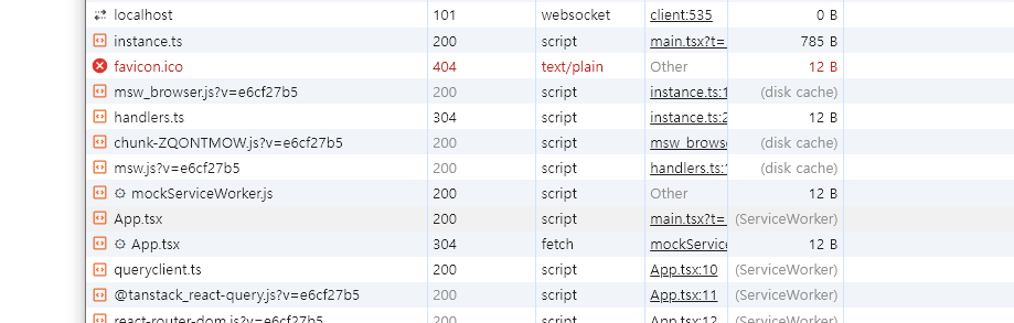 실제로 fetch를 실패한 부분이 아닌, 더 위의 요청을 보면 App이 가져오는 모든 모듈을 먼저 가져오는 걸 확인할 수 있었어요.