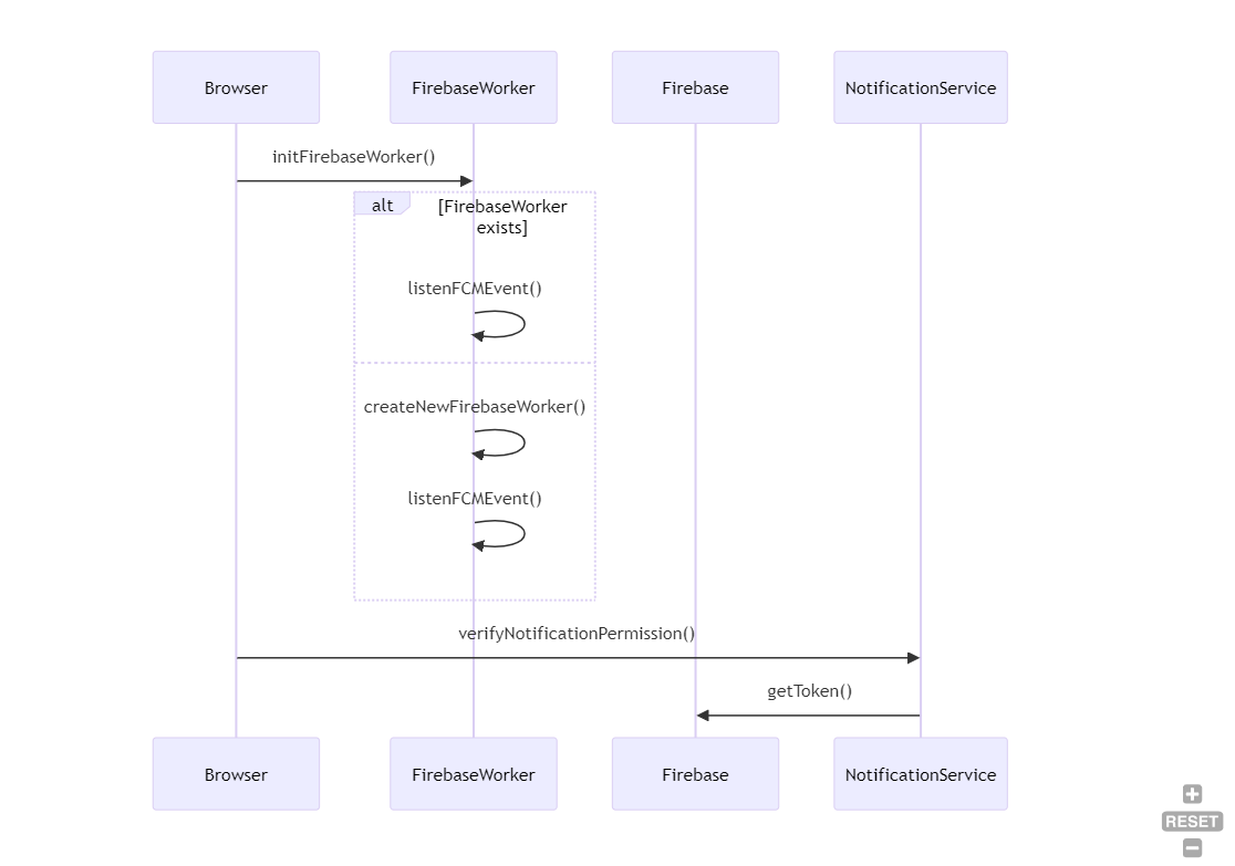 하지만 기다린 다음에 알림 권한 요청을 하는 이유는 FCM의 getToken()의 내부적인 구조적인 이유 때문에 그렇습니다. 더 앞서서, 사실 Firebase Service Worker를 따로 init해주는 이유도 이와 관련이 있습니다. 아래에서 더 자세히 다뤄볼게요.