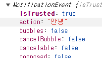 반대로 알림 자체를 클릭하면 action에는 빈 문자열이 들어오게 됩니다.