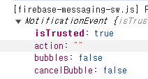 재밌는 것은 알림에 actions 속성이 있을 때인데요, action에 따라 버튼이 생기게 되고 해당 버튼 마다 동작을 다르게 만들 수 있습니다. action을 클릭하면, event의 action에 해당 액션의 이름이 들어옵니다.