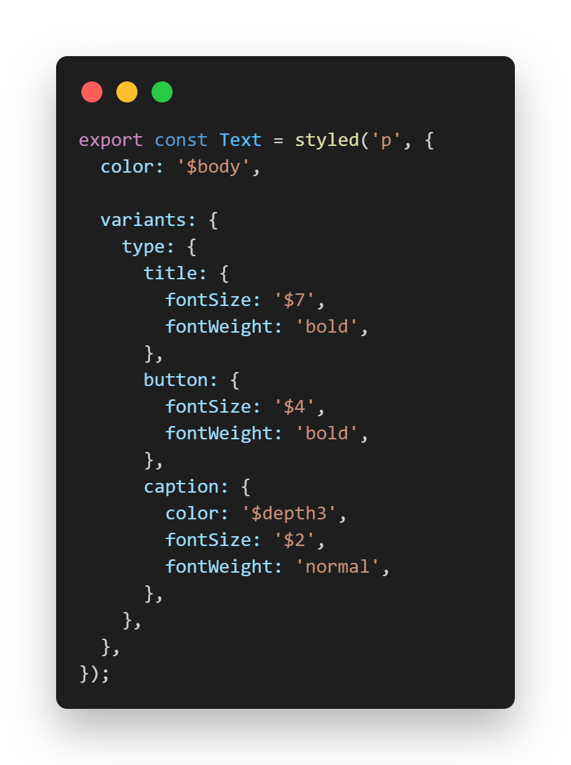 그러므로, 스타일링 라이브러리를 이것저것 찾아보다가 발견하게 된 게 Stitches다. 요놈은 Tailwind와 마찬가지로 기본 토큰을 정의해놓을 수 있었고, 거기에 Emotion이나 Styled Component처럼 컴포넌트 형식으로 사용할 수 있었다. 보다 마음에 들었던 건 Variant를 지원하고 있어서 코드 상으로 분기를 주지 않고 라벨만 적어줘도 디자인의 변경이 가능했다(!)