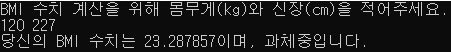 문제 : BMI 지수를 계산하는 프로그램을 만들어주세요