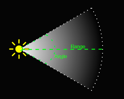씬의 한 점에 위치하여 원뿔 모양으로 빛을 발산하는 광원