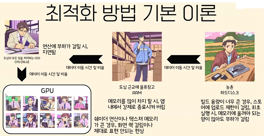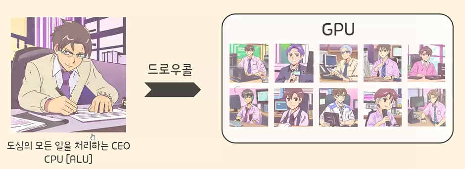 - 최신 프로그램에서는 그래픽 사양이 올라가면서 CPU 혼자서 일을 처리하기 어려워짐