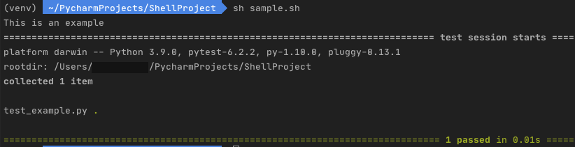실행하려는 테스트 파일은 test_example.py라고 가정합니다.($ py.test 명령어로 test_*.py형태의 테스트 파일을 모두 실행할 수 있습니다.)