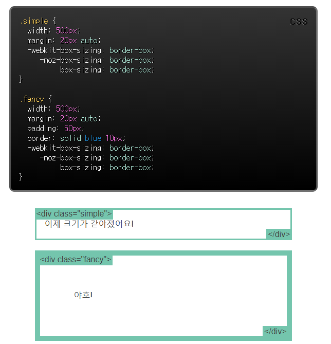 - width 값이 같더라도 padding 과 margin value 에 따라 실제 내용의 크기가 달라질 수 있다. 이에 대한 해결책으로 box-sizing 을 사용할 수 있다.