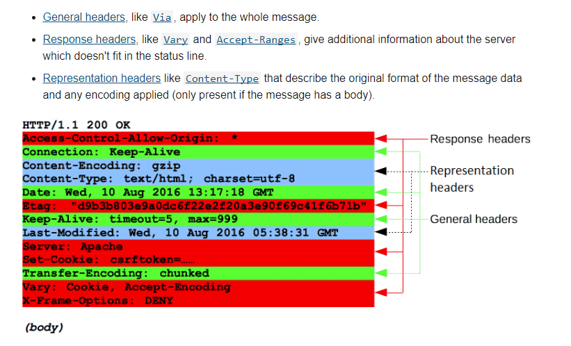 - 모든 요청이 바디를 가지고 있진 않다. 리소스 fetching 을 위해 쓰이는 GET, HEAD, DELETE 또는 OPTIONS 와 같은 요청은 대게 바디를 필요로 하지 않는다.