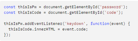 - keypress: 키보드를 눌러 어떤 텍스트가 작성되는 순간 발생