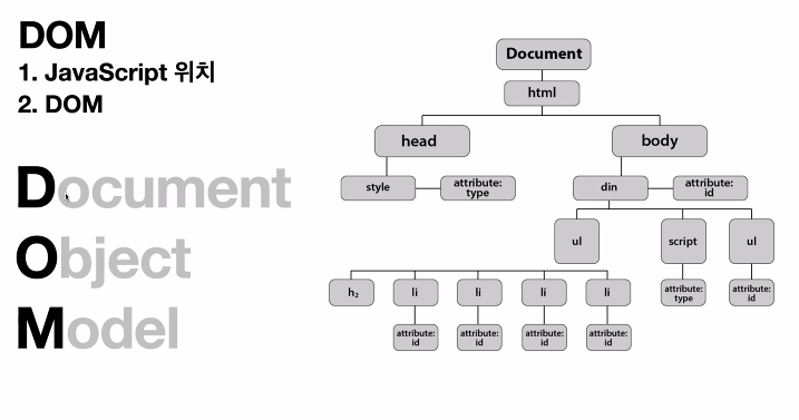 - JS 의 document object 는 DOM 구조를 접근하는 관문이며, document object 는 html 문서를 나타낸다.