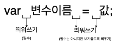 - 이름 중복 불가, 대소문자 구분, 첫문자는 무조건 글자나 _, $ 로 시작