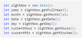 - new Date() 값을 그대로 사용하지 않고, 아래와 같이 변수로 받아 알맞게 formatting 할수 있다.
