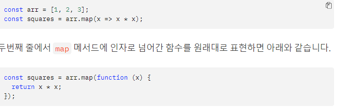 - 배열을 반복해주며, 수정된 값으로 다시 생성된 배열을 return 해준다.