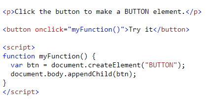 - var btn = document.createElement("BUTTON"); // "button" 도 가능