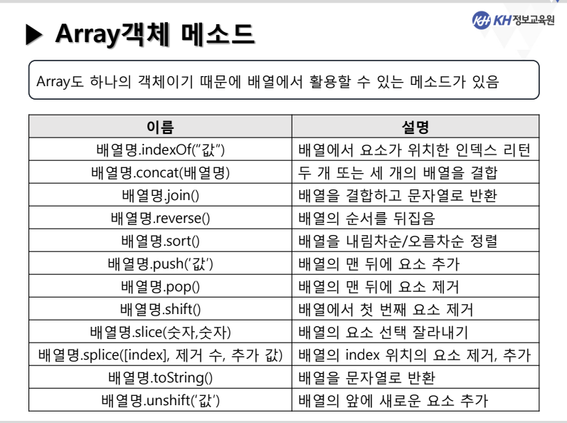 - 배열 관련 함수는 prototype이 Array인 배열에만 사용이 가능하다.