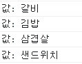 구분자를 기준으로 문자열을 나누어 배열 형태로 반환const str2 = "김치찌개/샌드위치/마라탕/햄버거/김밥/초밥"; const arr2 = str2.split("/"); for(let menu of arr2){ console.log(menu); // 위 메뉴가 배열로 반환 }