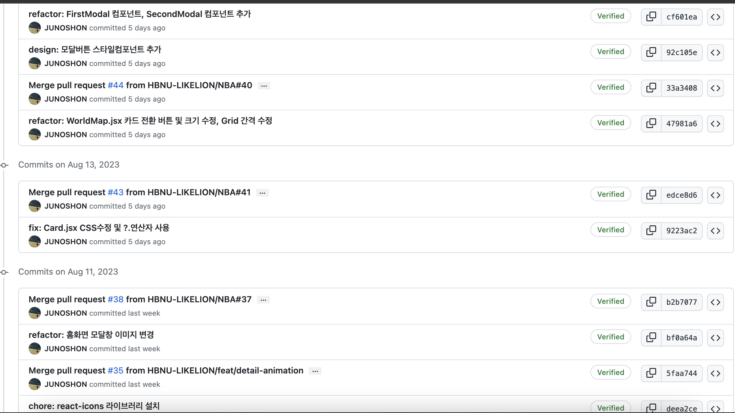 이번 프로젝트에서는 git commit convention을 정해 형식에 맞춰 커밋하고, 함수나 변수의 선언법을 우리 맘대로 정해서 해봤다.