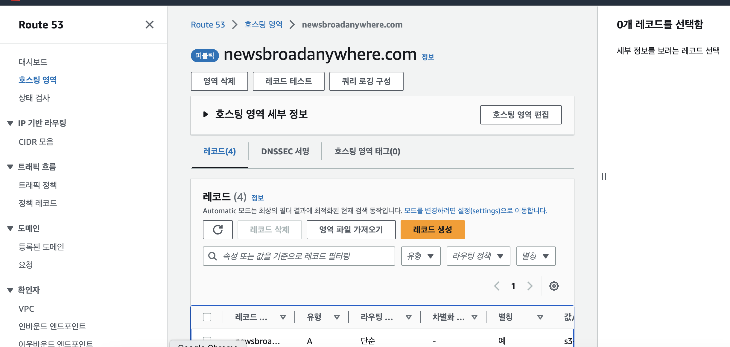 → 도메인 이름이랑 호스팅 영역이랑 같아야 하는걸 모르고 두시간을 삽질했다.