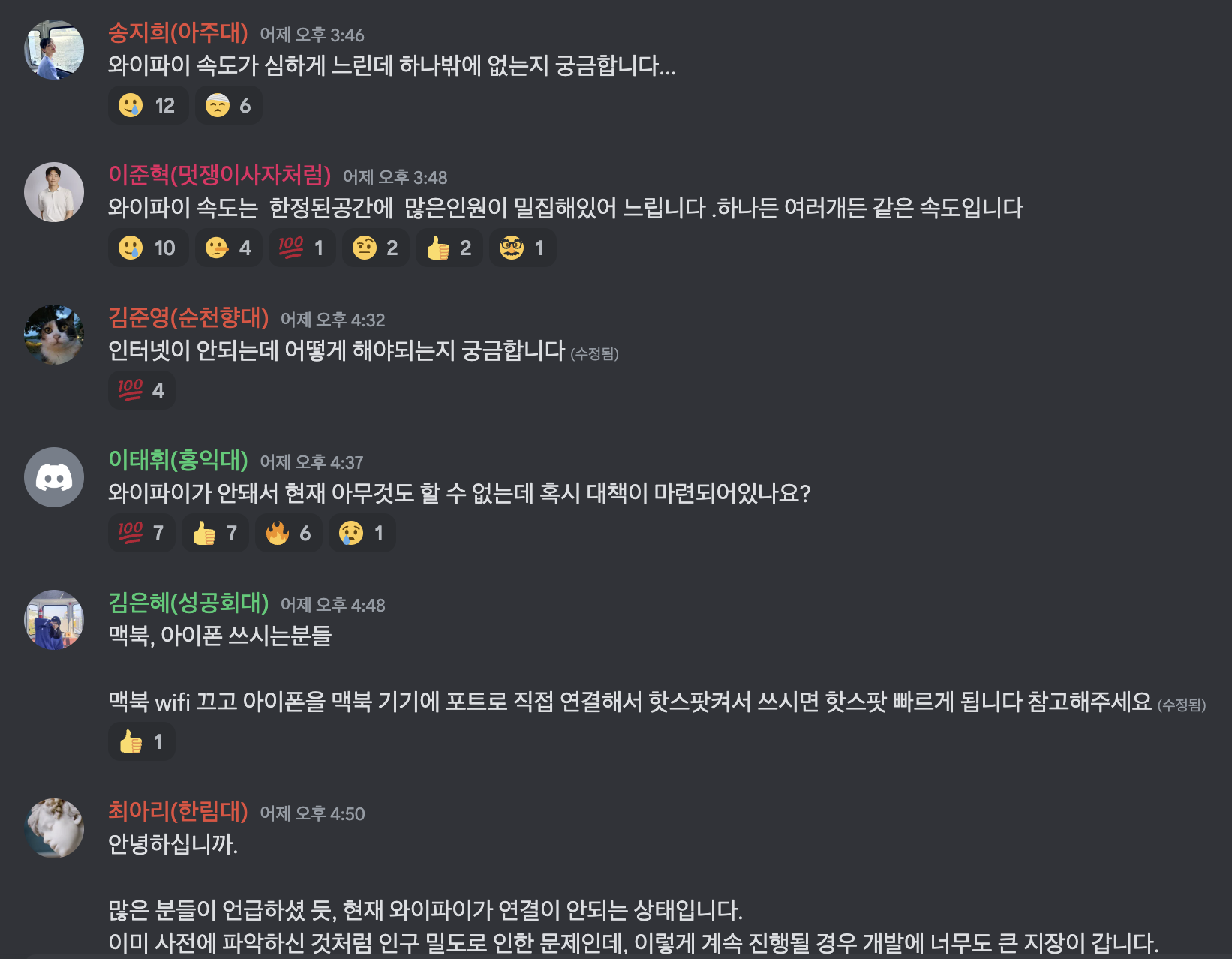 그 와중에 어떤 학생이 맥북 와이파이 끄고 아이폰을 맥북에 연결해서 핫스팟 키면 빠르게 된다는 정보를 주셔서 급한 불은 껐다. 그런데 이 마저도 통신사가 SKT 인 기기는 매우 느리다는 점,,