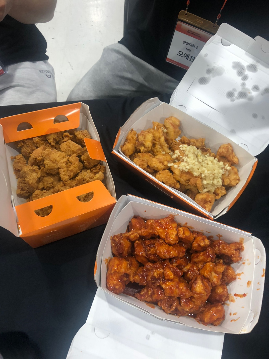 미리 주문해놓은 치킨을 배달받아 야식을 먹었다.