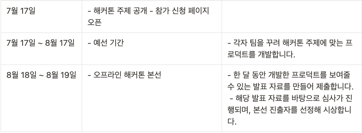 기존의 해커톤은 미리, 혹은 현장에서 팀을 꾸려 발표된 주제에 맞춰 프로젝트를 만드는 것이지만 멋사 해커톤은 예선기간이 길어 프로젝트를 미리 준비할 수 있다.