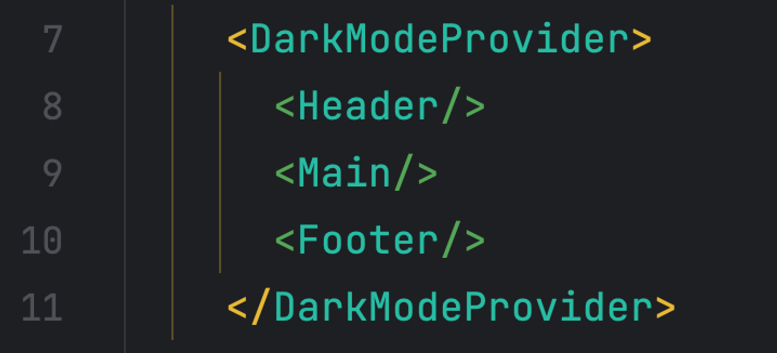 이후 DarkMode Context를 사용하기를 원하는 컴포넌트 트리 루트를 Provider로 감싸주면 된다.